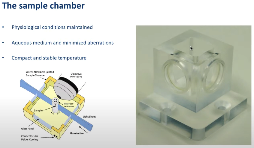 The light sheet microscope captures images by detecting the fluorescent light emitted by the sample. This fluorescence can occur naturally in the specimen or can be induced through labeling techniques such as fluorescent dyes or genetically encoded fluorescent proteins. By scanning the sample with the light sheet and capturing images from different angles, a three-dimensional image of the specimen can be reconstructed.