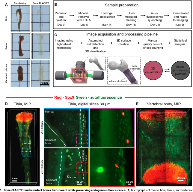 - Macro- to meso-scale imaging of 3D volumetric samples prepared by tissue clearing techniques with strong efficiency (CUBIC, BABB, DISCO, SHIELDs etc.)