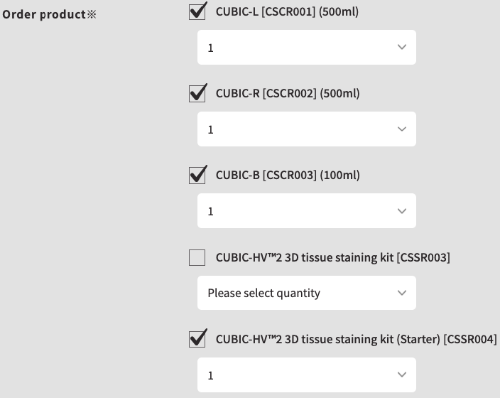 | CUBIC-HV™2 3D tissue staining kit (starter) | [CSSR003] | (500ml) | 1 | 1580USD |