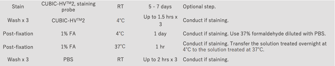 *Refer to Susaki et al. Nature Protocol 10:1709–1727 (2015) for details.