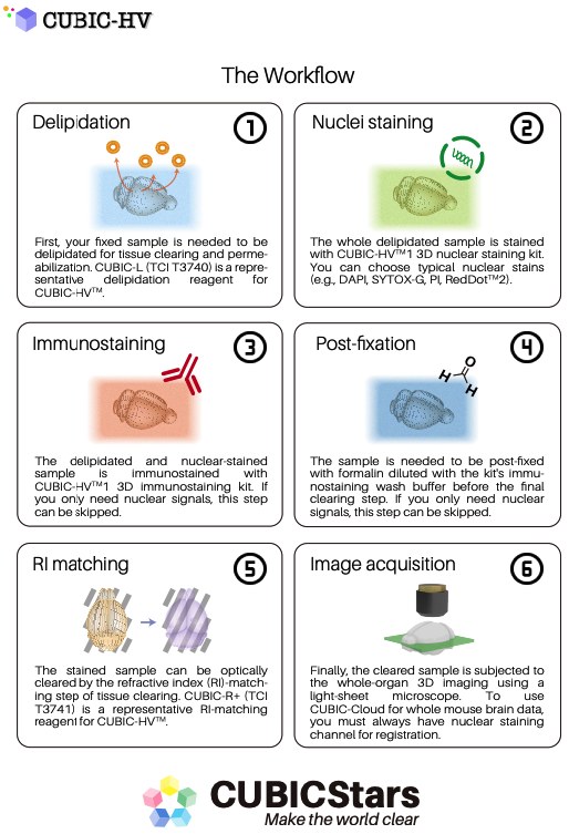 3D nuclear staining and immunostaining steps by CUBIC-HVTM1 kits